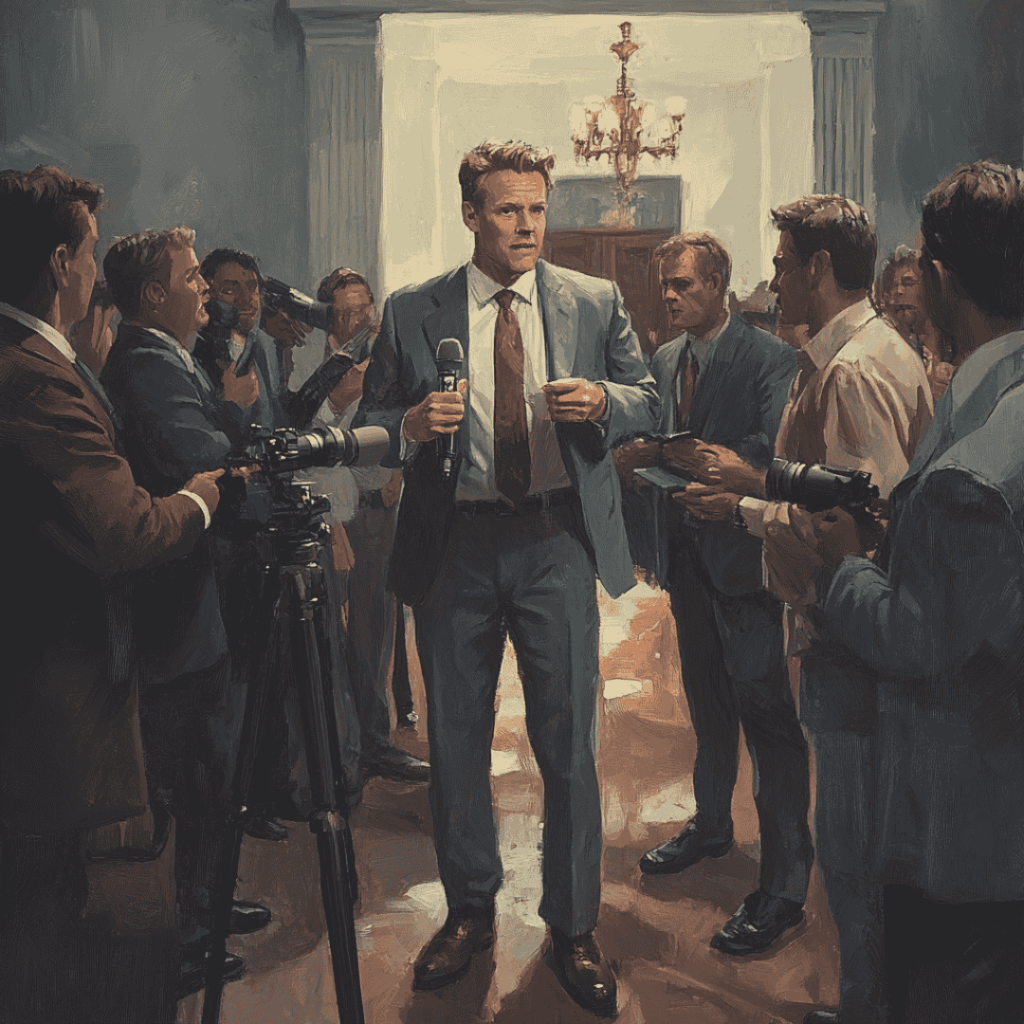 A reserved mayor faces a restless crowd as a fearless journalist challenges him publicly, exposing tension, unanswered questions, and the growing divide between leadership and concerned citizens.