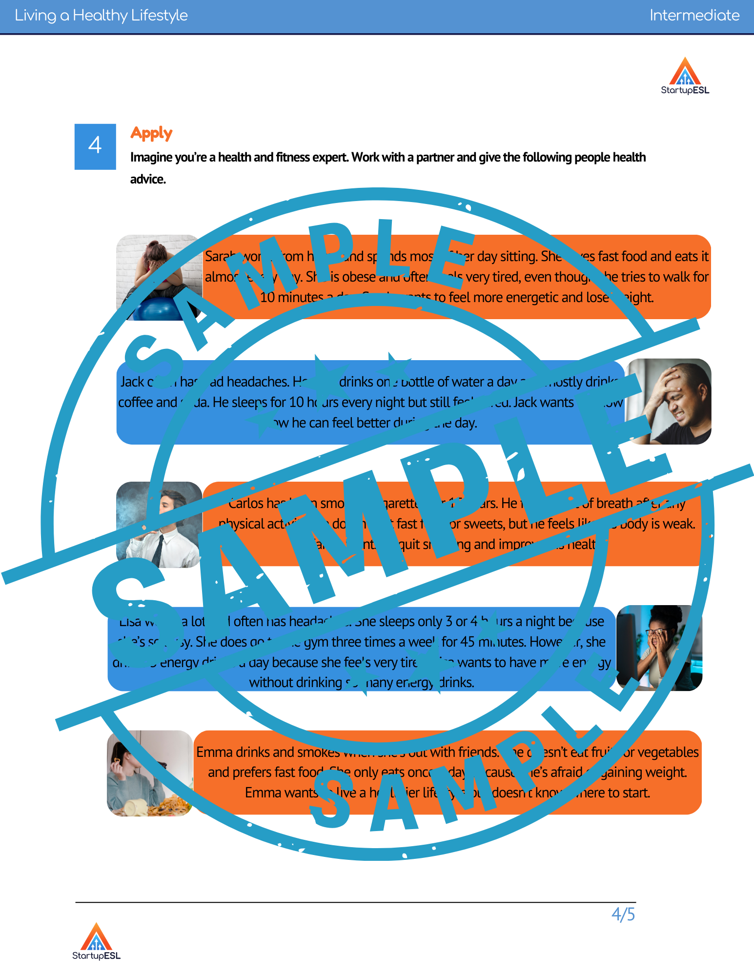 In this ESL lesson, students will explore healthy and unhealthy habits through listening and discussions. They will listen to expert health advice, learn useful phrases for giving advice, and practice advising others on how to improve their health. This lesson focuses on building confidence in discussing health-related topics, building vocabulary, and improving conversational skills. By the end of the lesson, students will be able to talk about healthy lifestyles confidently, share their own lifestyle, and provide practical health advice to others.