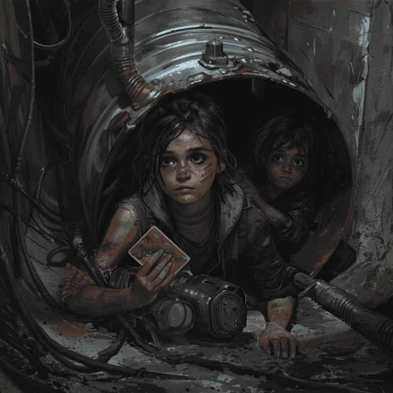 Lena crouched behind a rusted air duct, clutching a tattered ration card. Her brother, Kye, lay unconscious beside her, weakened by malnutrition and a hacking cough that no longer startled anyone. Illness had come to afflict nearly every family in their quadrant, spreading like digital code through a corrupt system—inevitable and unseen.