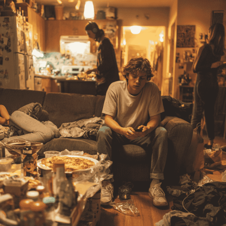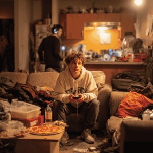 - Blasts music at 2 am/leaves dishes piling up/ has his friends crash on the couch
